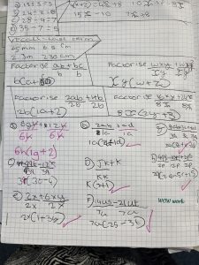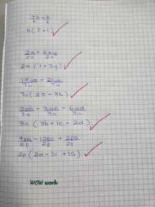 Wow work from Year 10 in Maths factorising brackets. They have learnt that you need to divide by the common factors. Special shout out to Zach H, Evie A, Emma C, Charlie F and Cameron S. Well done  #westhoughtonwowwork #aimhigh #maths #year10
