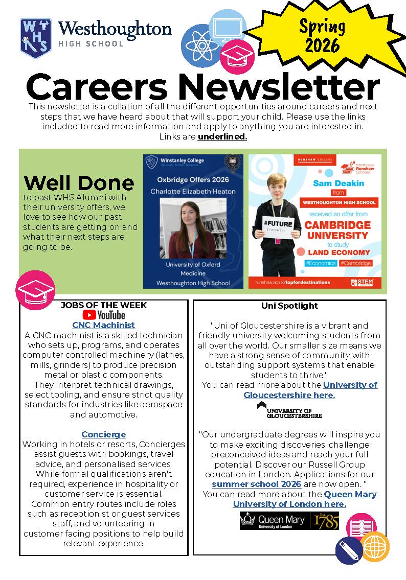 We ensure that students get access to technical and apprenticeships providers in accordance to the Baker Clause during their time at Westhoughton High School.