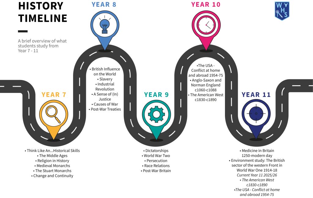 In History at Westhoughton High School, all our students LEARN. Our curriculum is developed to bring to life engaging topics from the past so students ENJOY studying past events, and their impact on the world we live in today. Budding historians are encouraged academically to AIM HIGH as they learn to think critically, make reasoned arguments and debate their opinions. History a highly relevant, as the past often informs the present and the future and the skills learned in evaluation, research and interpretation are significant for students’ future learning and employment.